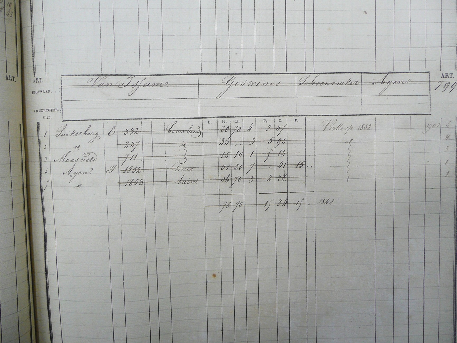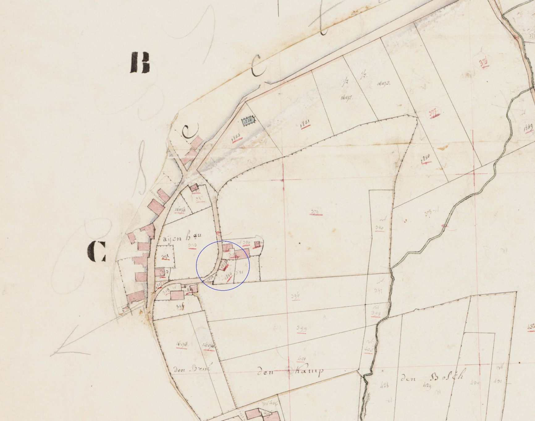Voormalig huis F 1852 op de Kadastrale kaart van 1821-1832