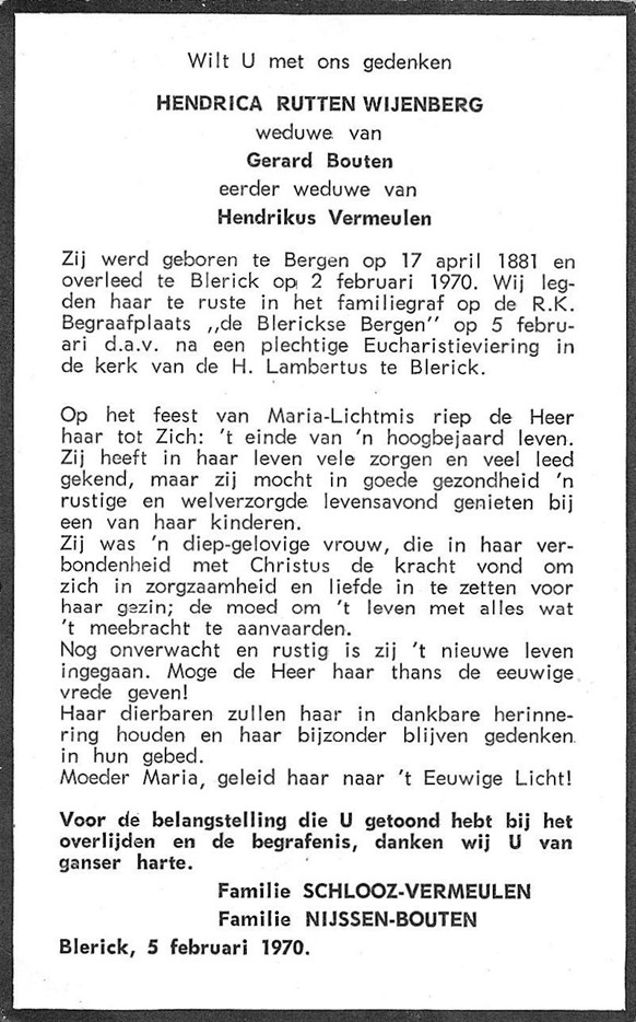 3 Hendrica Rutten Weijenberg, Rutten Wijenberg, geboren op zondag 17-04-1881 in Bergen, provincie Limburg.