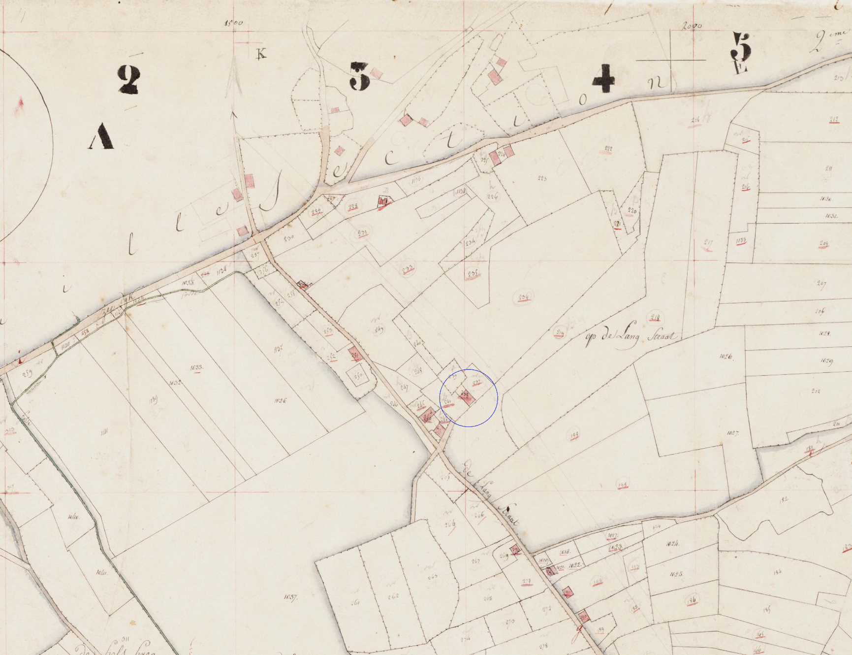 Voormalig huis E 238 op de Kadastrale kaart van 1821-1832