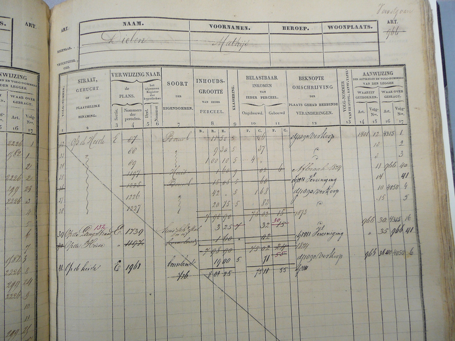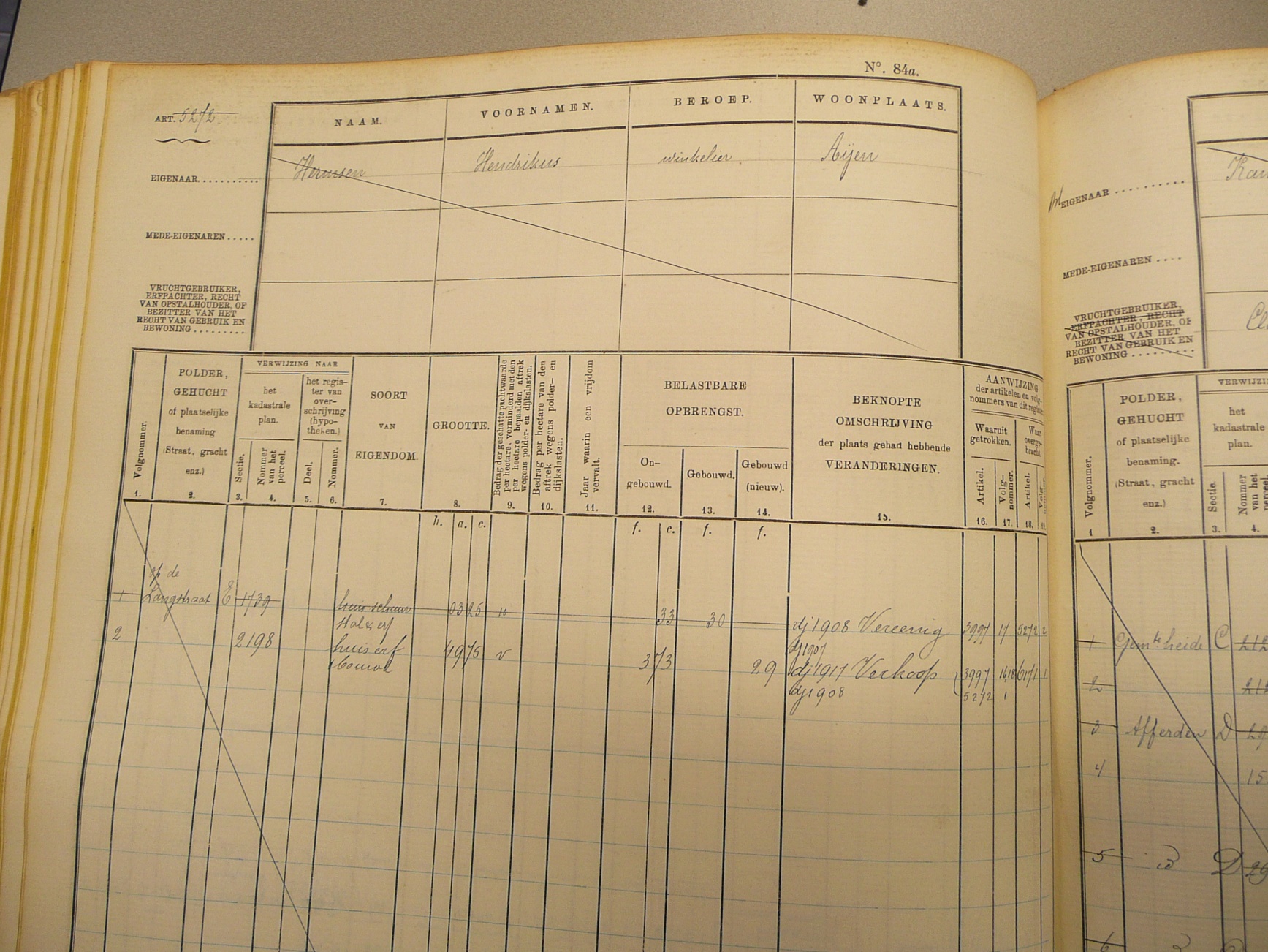 Huis en erf, elk groot 02 roede 50 el, Klassering 3, Op de Langstraat