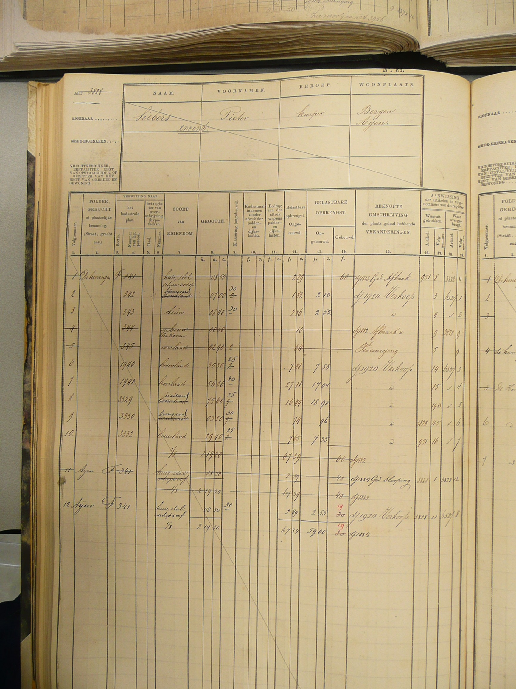 Kadastrale kaart 1821-1832: oorspronkelijke aanwijzende tafel Bergen, Limburg, sectie F, blad 12